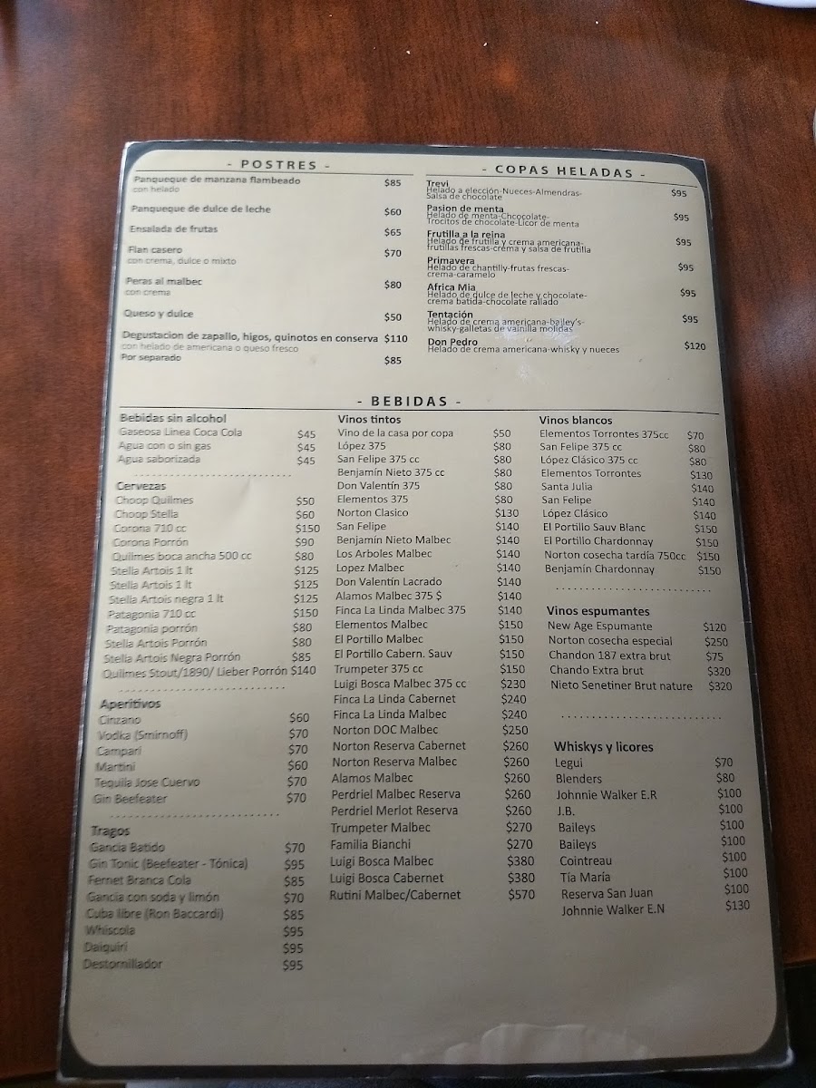 The menu at Trevi in Los Cardales offers a diverse selection of food and beverages suitable for various dining occasions, including breakfast, coffee breaks, casual meals, and desserts. The offerings span multiple categories reflecting its nature as a restaurant, bar, cafeteria, and ice cream shop.